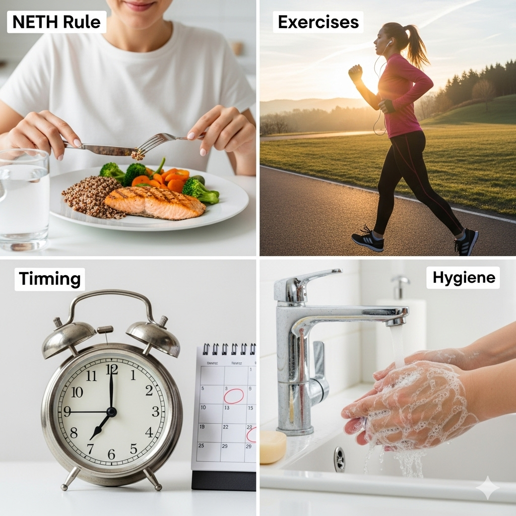 E. Exercise:Maintaining regular exercise minimum 30 minutes a day.