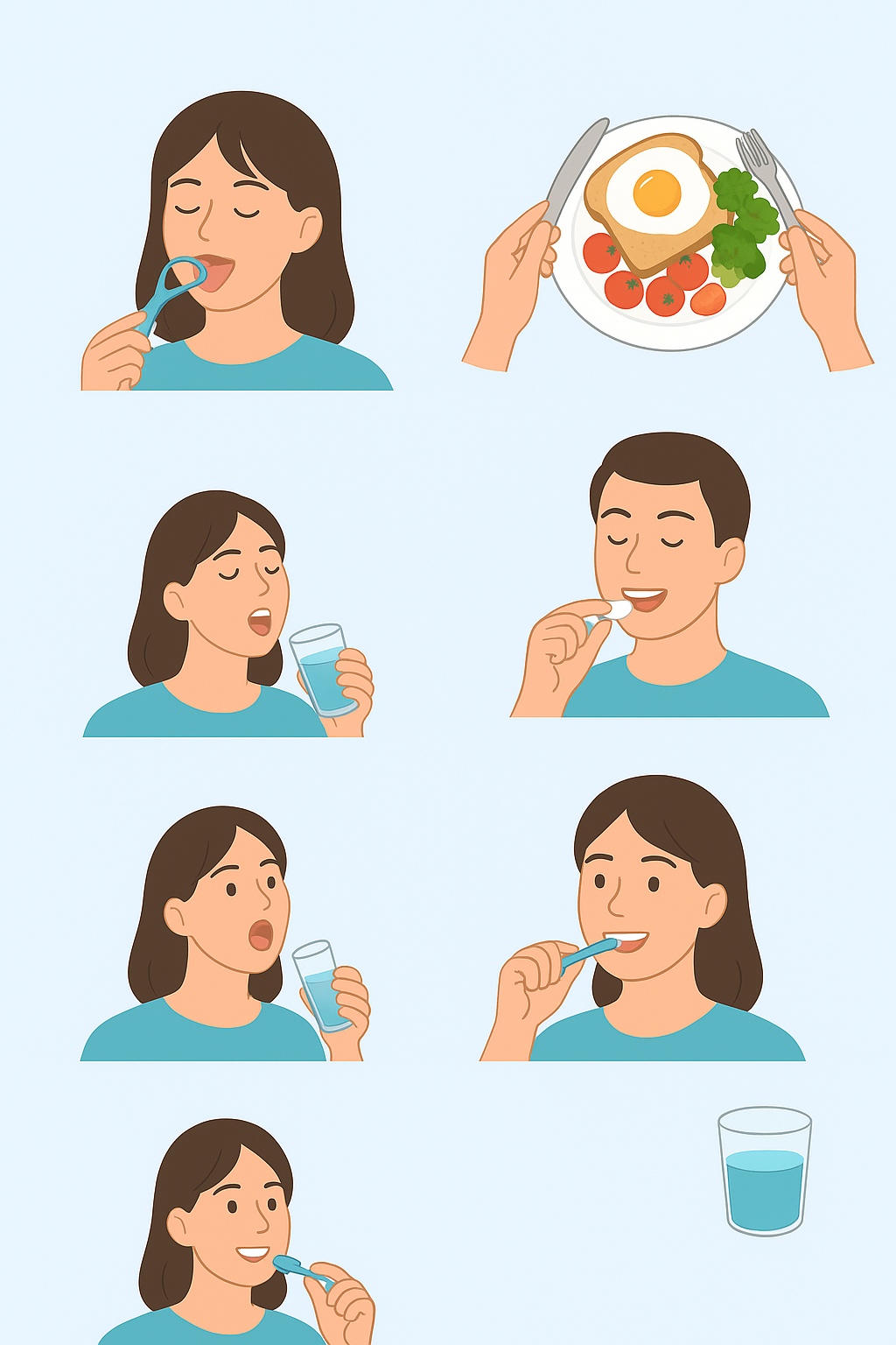Eating healthy breakfast with rough food helps clean the very back of tongue.