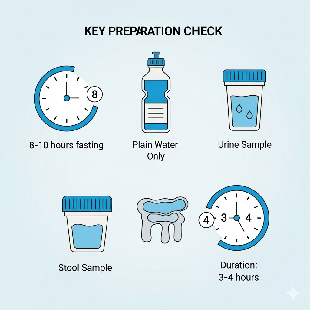 Please bring your first sample of urine and stool collected in sterile containers. You should pick up sterile containers from our clinic before the day of your Health Check appointment.