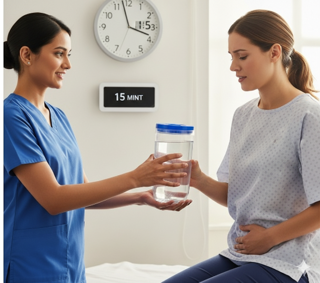 Once you start drinking, DO NOT empty your bladder until the scan is complete.